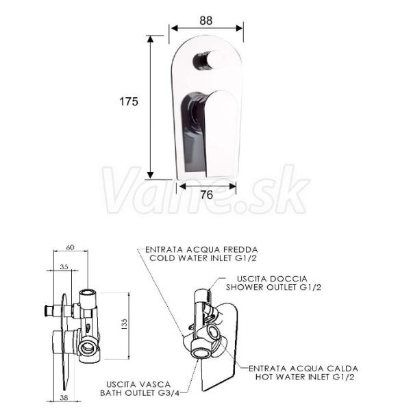 - Možnosť napojenia napr. Ručnej a hlavovej sprchy alebo hlavovej sprchy a