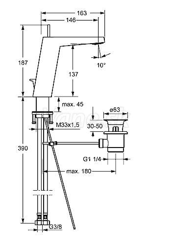 - pripojenie tlakovej hadice G 3/8
